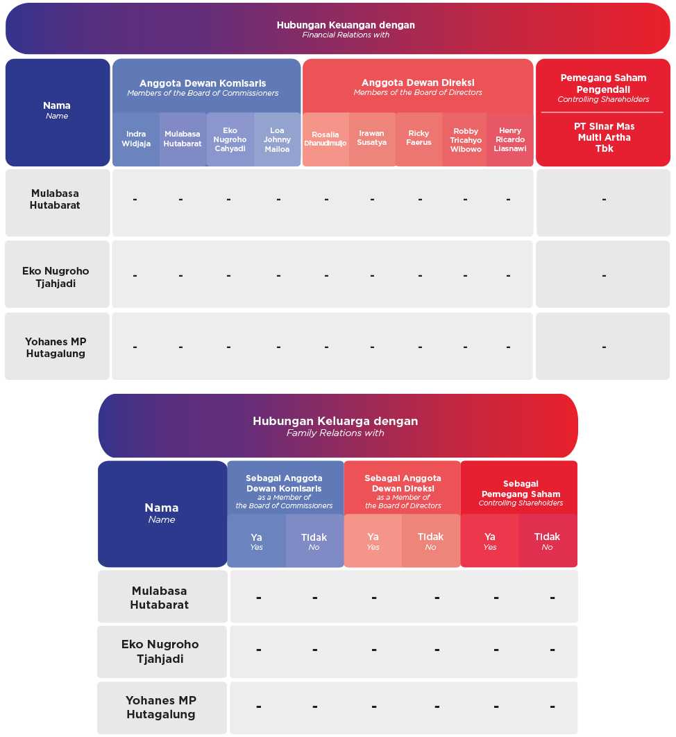 Berikut merupakan tabel data hubungan keluarga dan keuangan dari anggota Komite Audit dengan anggota Dewan Komisaris dan/atau anggota Direksi serta pemegang saham Perseroan sebagai berikut: